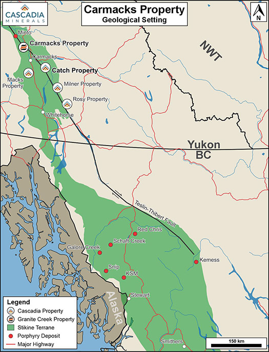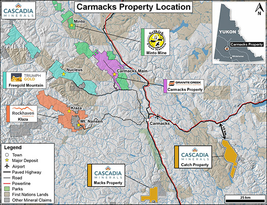 Graham Downs, President and CEO of Cascadia, commented: “This transaction is a great opportunity for both Cascadia and Granite Creek shareholders. The Carmacks Project provides a strong foundation of road-accessible resources in a safe jurisdiction. Our team is confident in the exploration potential around the main deposits and throughout the property. We look forward to building on the systematic work Granite Creek has conducted in recent years by growing near-deposit resources and exploring along trend toward the nearby Minto deposit to the north. Planning is already underway for a fall drill program at Carmacks, while work advances in parallel at our Catch Property and other discovery-stage Yukon Stikine projects. The Cascadia team has a demonstrated track record of advancing district-scale projects and making meaningful discoveries, and we look forward to bringing this experience to the Carmacks Project as well.”